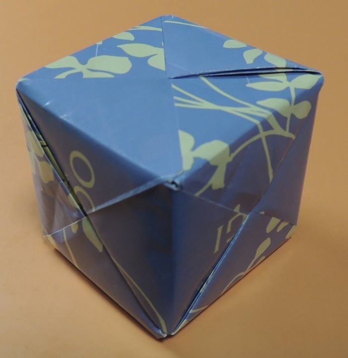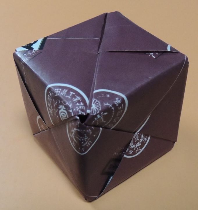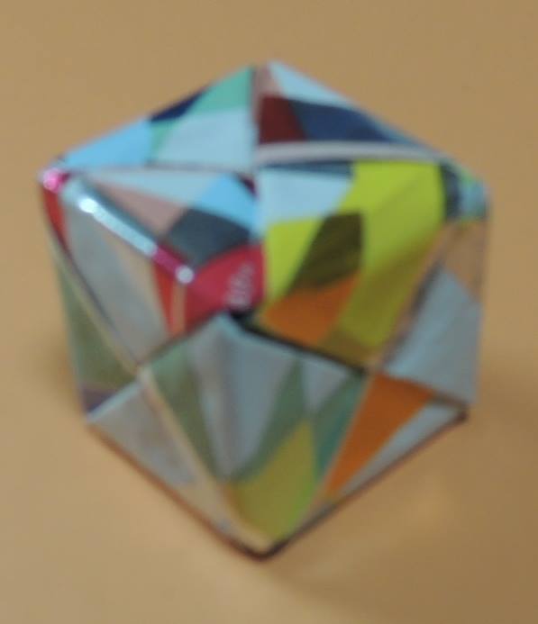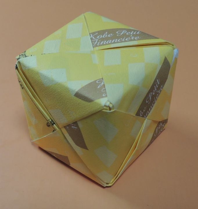 ユニット折り紙〜立方体を作る収集したお菓子の包装紙の整理に関する一考察2015年1月11日 20:05ワシの収集癖は知ってる人なら知っている。 色んなモノをとにかく集める。 金をかけずに集めることのできるものは、無価値と思わしきものでも集める。 タバコの空き箱、ビールの空き缶に始まり、観光パンフレット、箸袋、ポストカード、お菓子の包装紙・栞…。 集めるんやけど、整理が行き届かんで、結局貯め放題でゴミの山になる。 とにかく紙の類が多い。薄っぺらい紙でも、気がつけば途方も無い量に膨れ上がってしまっているのだ。 お菓子の包装紙などは、「誰かにプレゼントするときに包むのに役立つ」という実用性を持っている。そう。マイ・コレクションの中でも、価値を有するモノなのだ。 と、言い訳がましい事を言ってみるものの、今までにプレゼントをお菓子の包装紙で包んだことなど一度もない。大切な相手に、お菓子の包装紙などプレゼントを包んで渡すなど、失礼極まりない。百均に行けば、それ相当の包み紙を安価で購入できる。わざわざお菓子の包装紙など使う必要はない。 ならば、やはり価値がないものなのか…。いいや違う。折り紙に使えるやん! いやいや、折り紙こそ百均で買やぁいいやん! あれこれと自問自答を繰り返したが、結論はこうである。